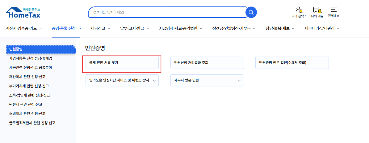 민원증명 → 납세증명서(국세)