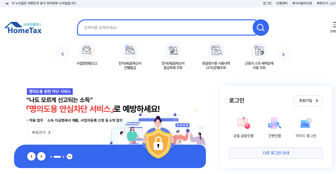 사이트: 국세청 홈택스 - 메인